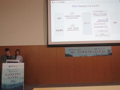 厳正な審査により、最優秀賞には、「Fish Visa〜スマホで完結する、養殖魚の輸出パスポート〜」(チーム名:The thirteenth unique tank)、審査員特別賞に「代替魚マッチングサービス〜Fish Twin欲しい魚、その”そっくりな相棒”見つけます〜」(チーム名:チームウォンナ)が選出されました。