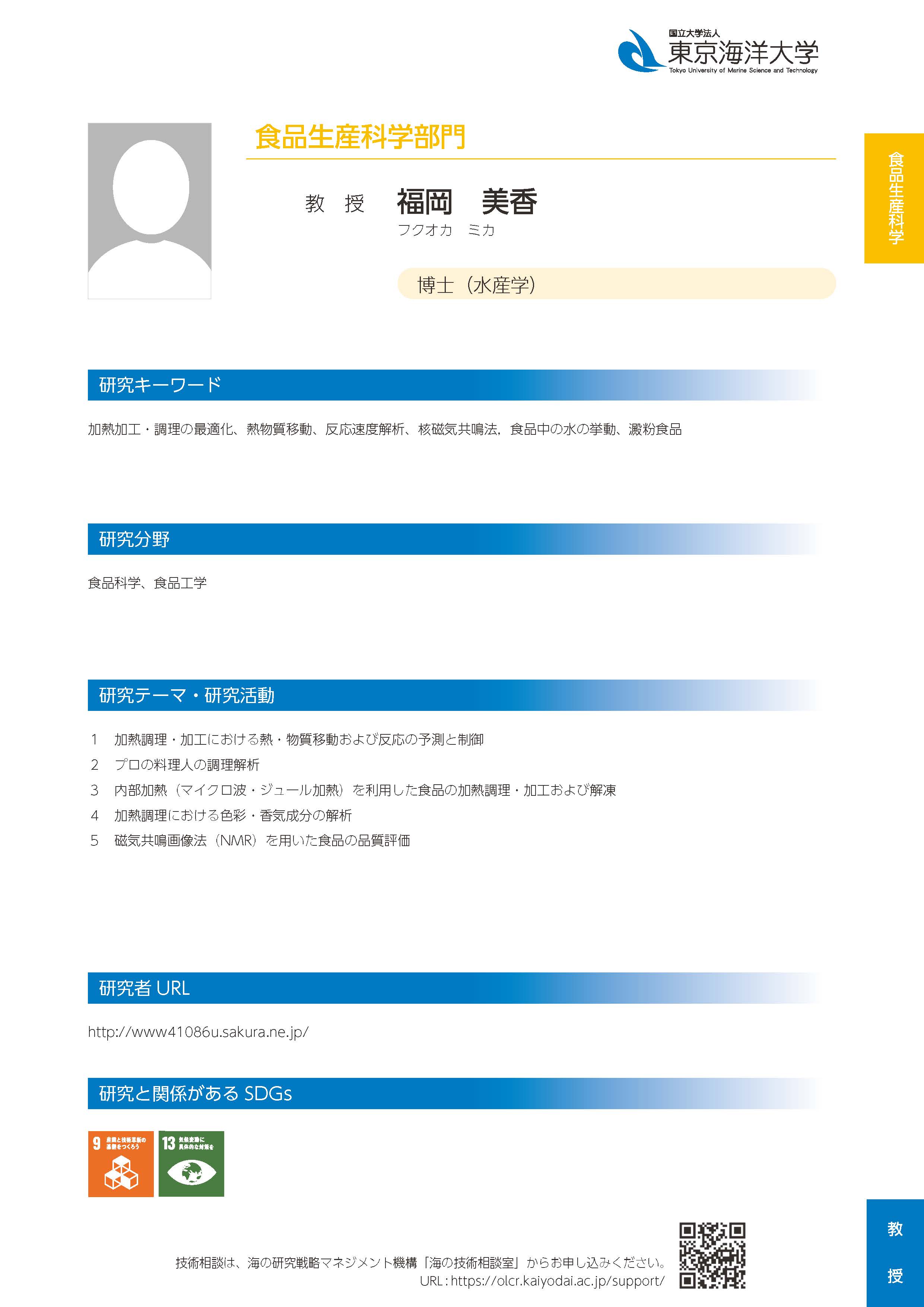 | 研究者情報冊子版 | 食品生産科学部門_教授_福岡美香.pdf |