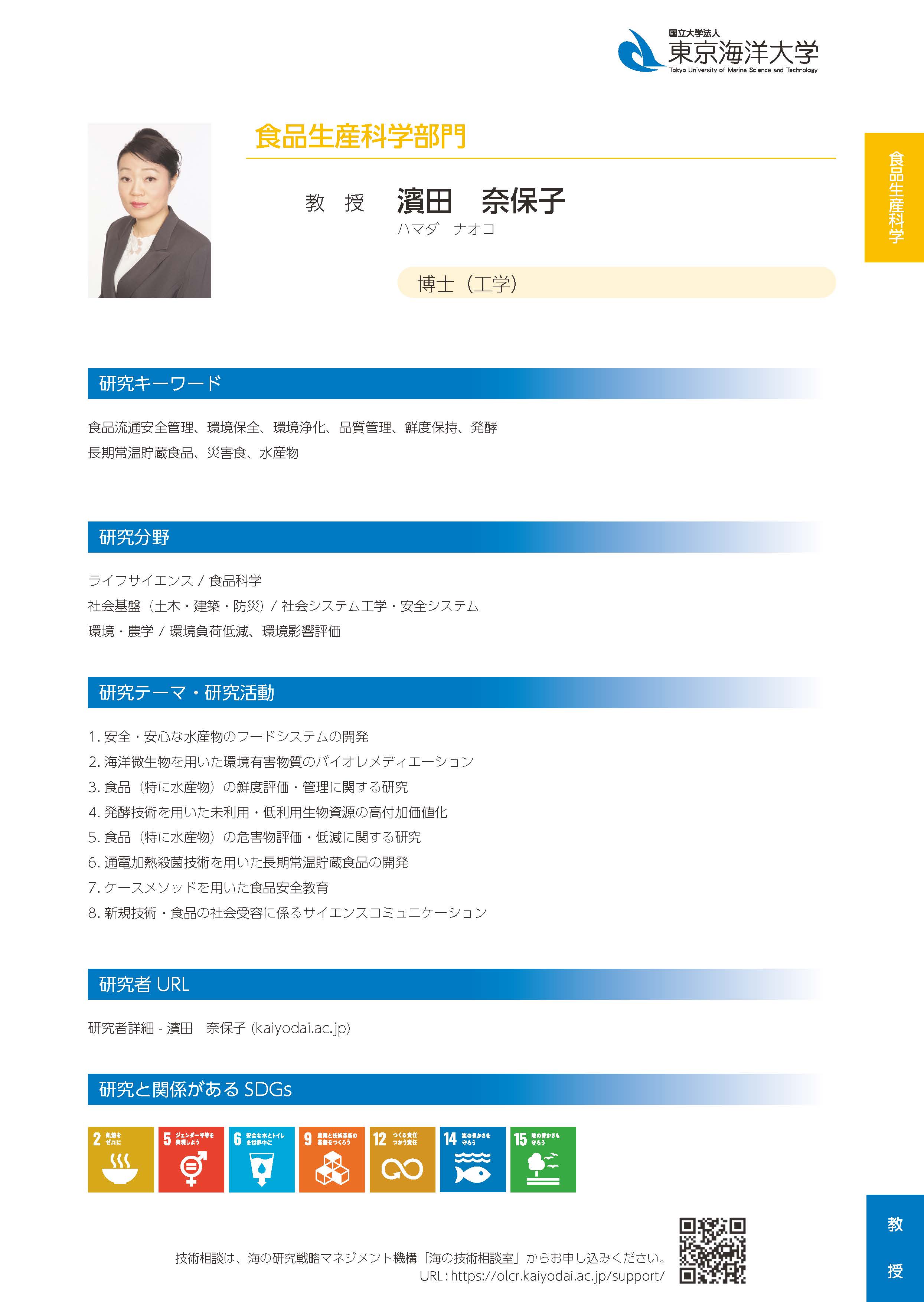 | 研究者情報冊子版 | 食品生産科学部門_教授_濱田奈保子.pdf |
