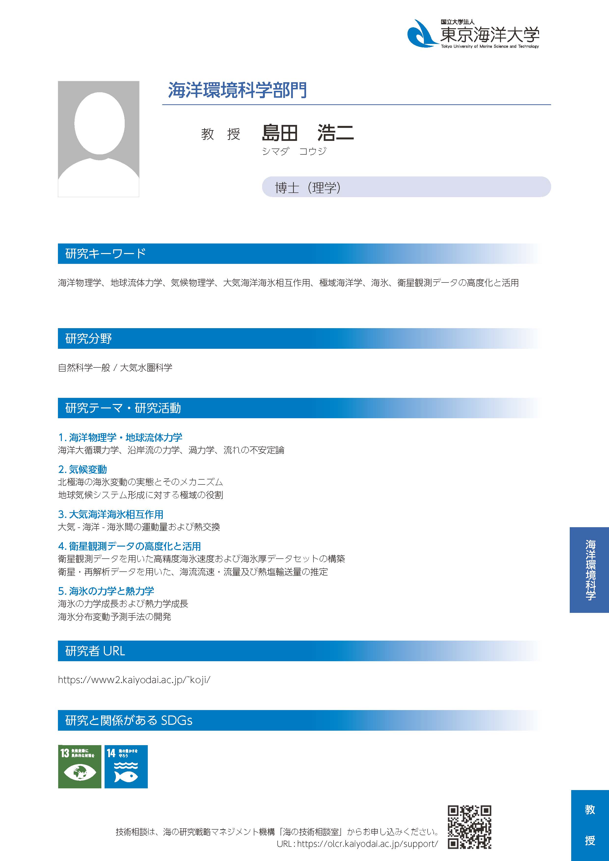 | 研究者情報 | https://tumsatdb.kaiyodai.ac.jp/html/100000681_ja.html |