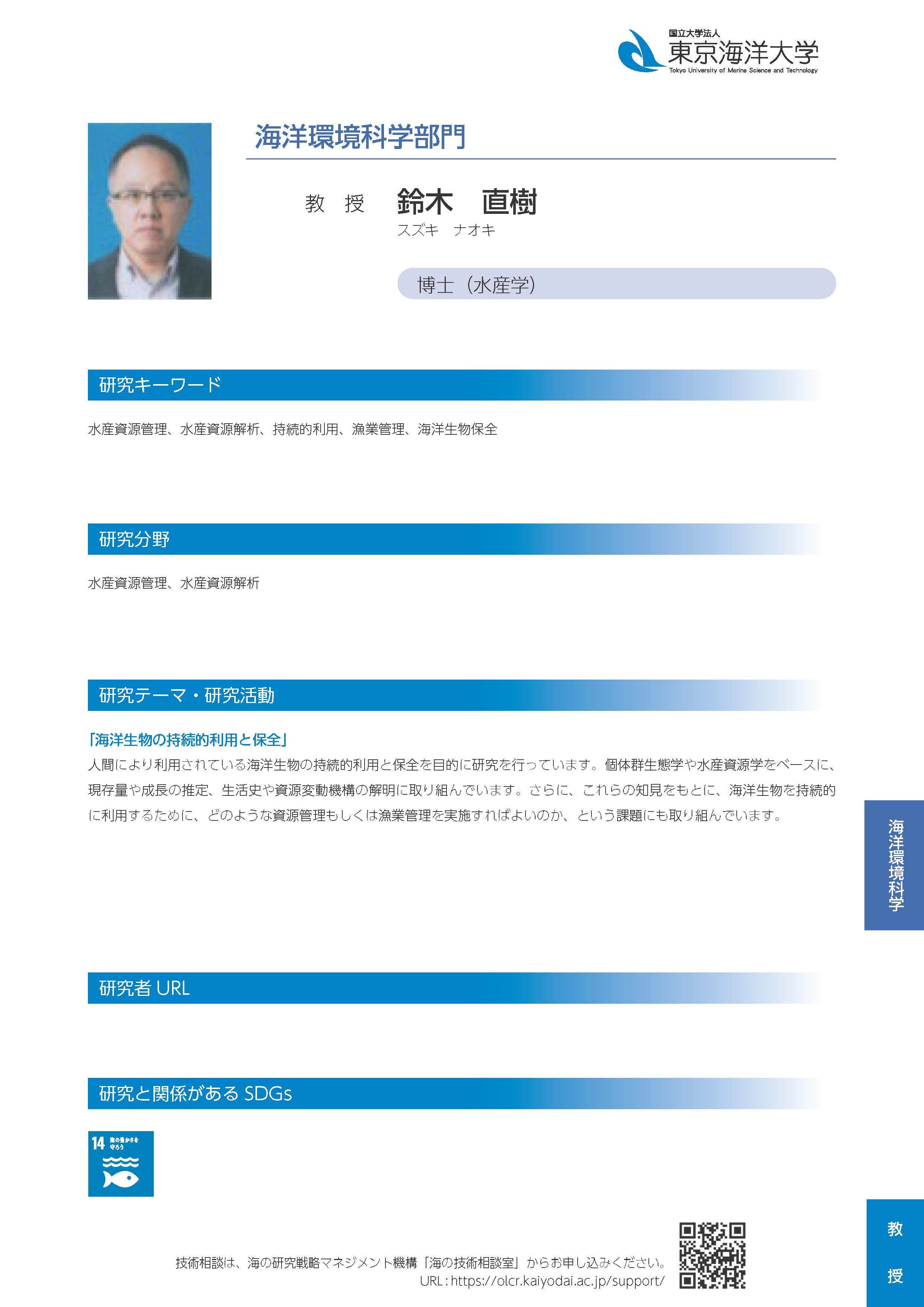 | 研究者情報 | https://tumsatdb.kaiyodai.ac.jp/html/100000669_ja.html |