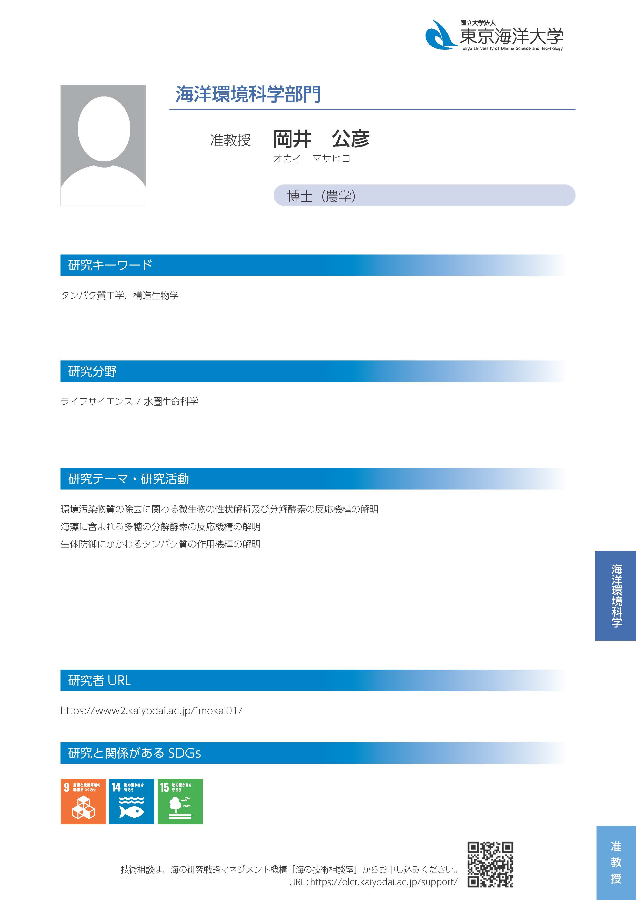 | 研究者ホームページ | https://www2.kaiyodai.ac.jp/~mokai01/ |
