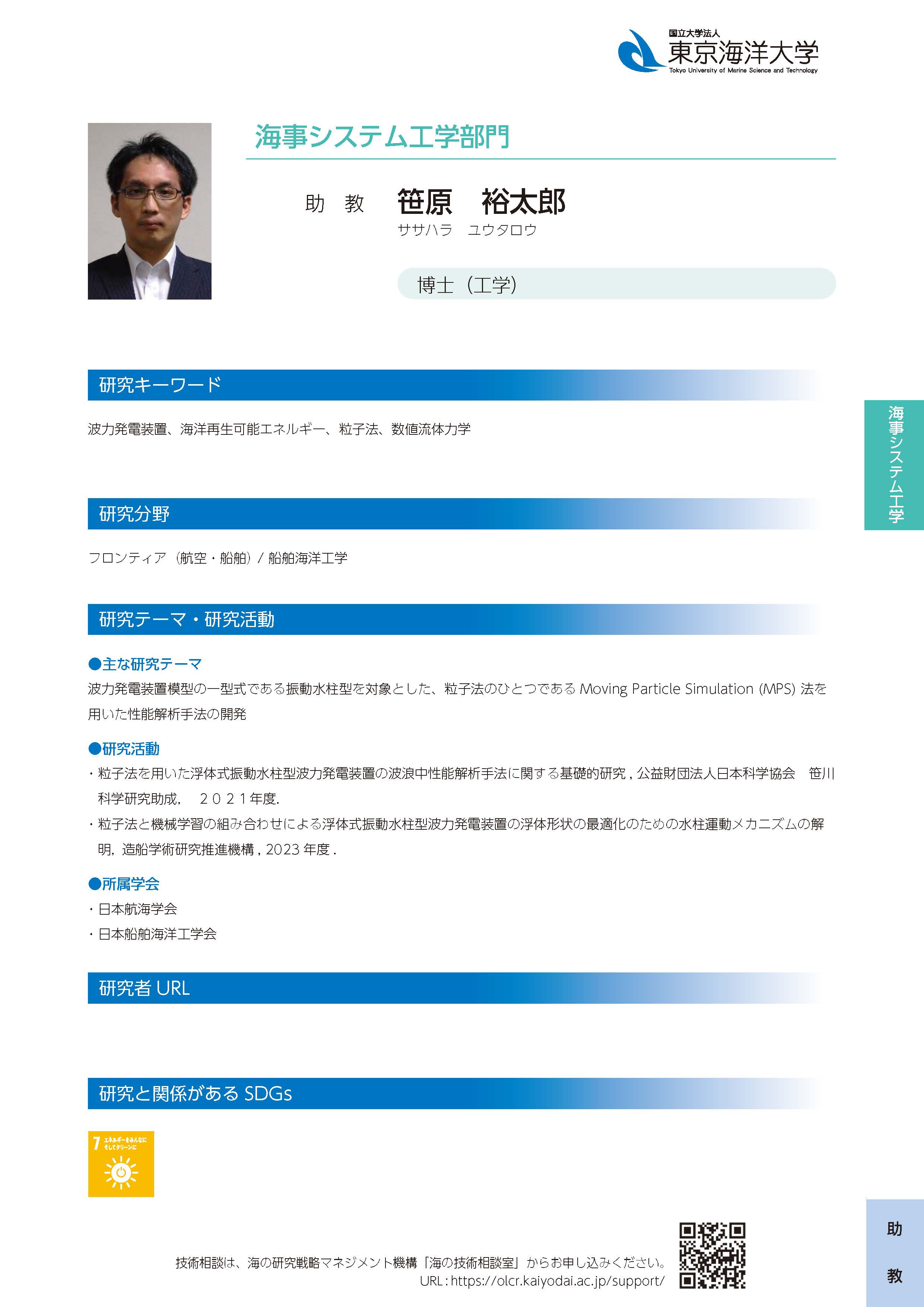 | 研究者総覧冊子版 | 海事システム工学部門_助教_笹原裕太郎.pdf |