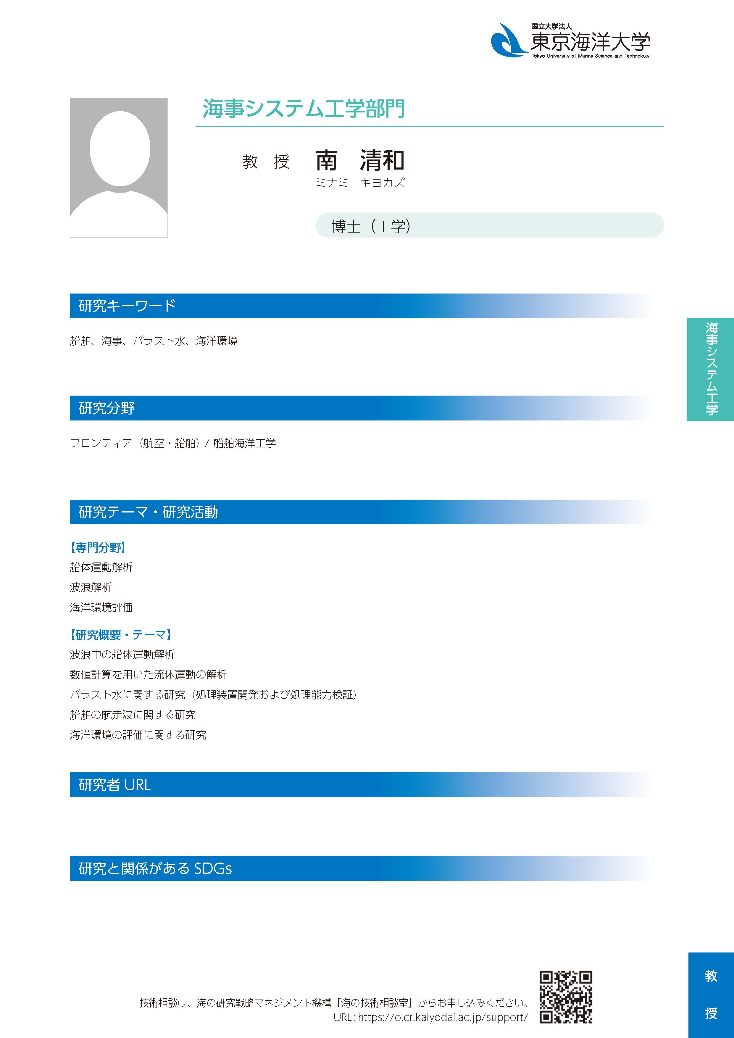 | 研究者総覧冊子版 | 海事システム工学部門_教授_南清和.pdf |