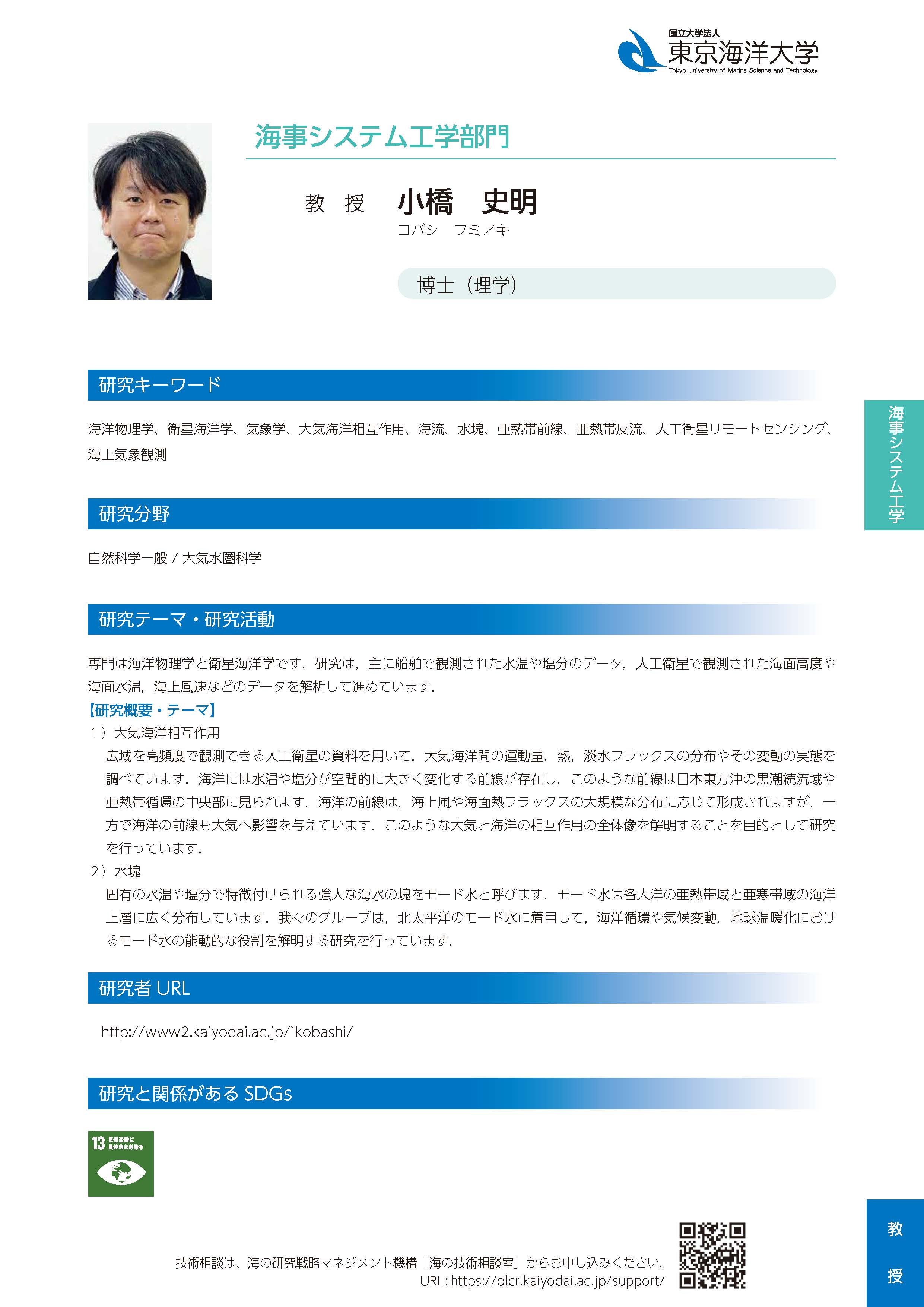 | 研究者総覧冊子版 | 海事システム工学部門_教授_小橋史明.pdf |