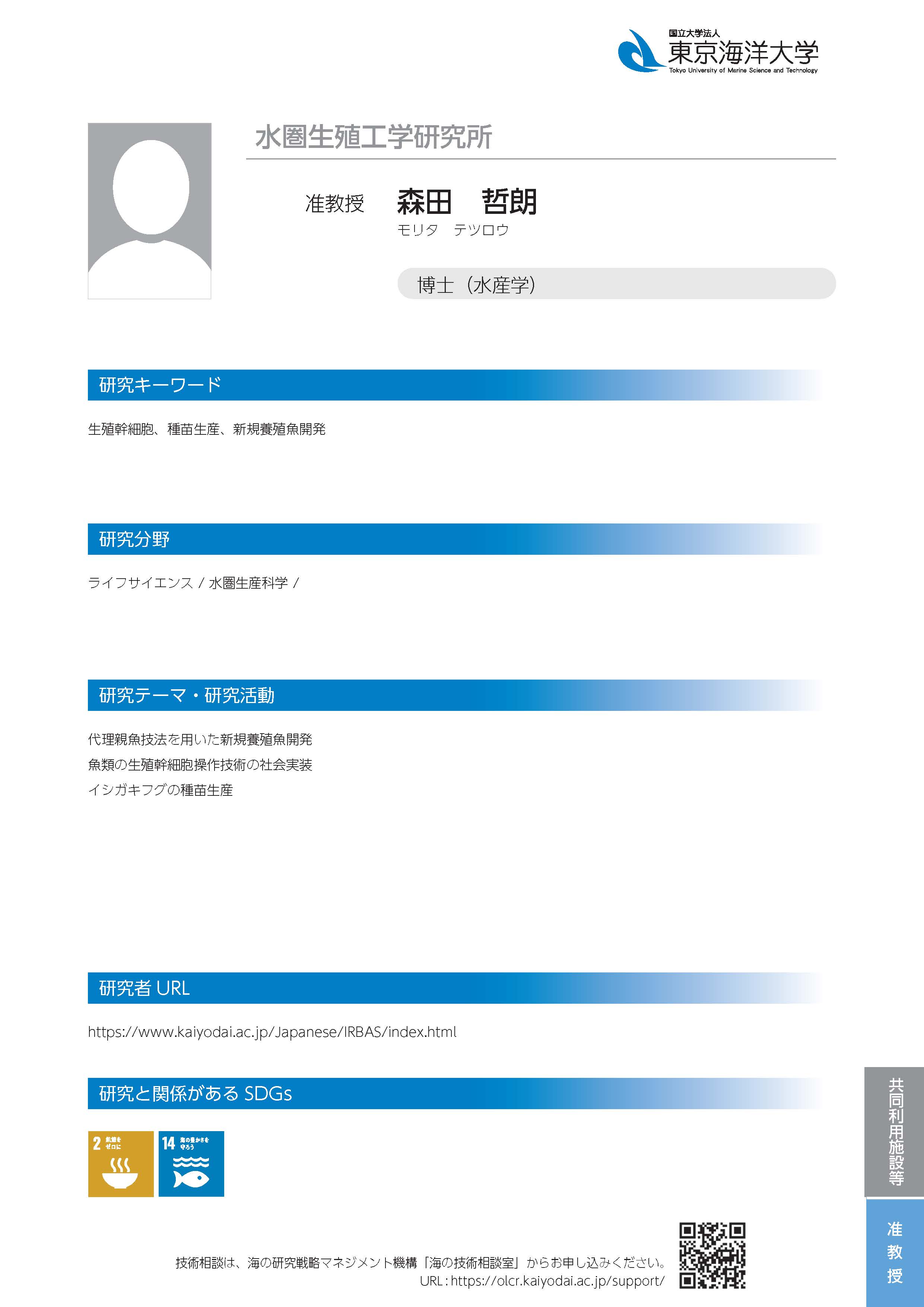| 研究者総覧冊子版 | 水圏生殖工学研究所_准教授_森田哲朗.pdf |