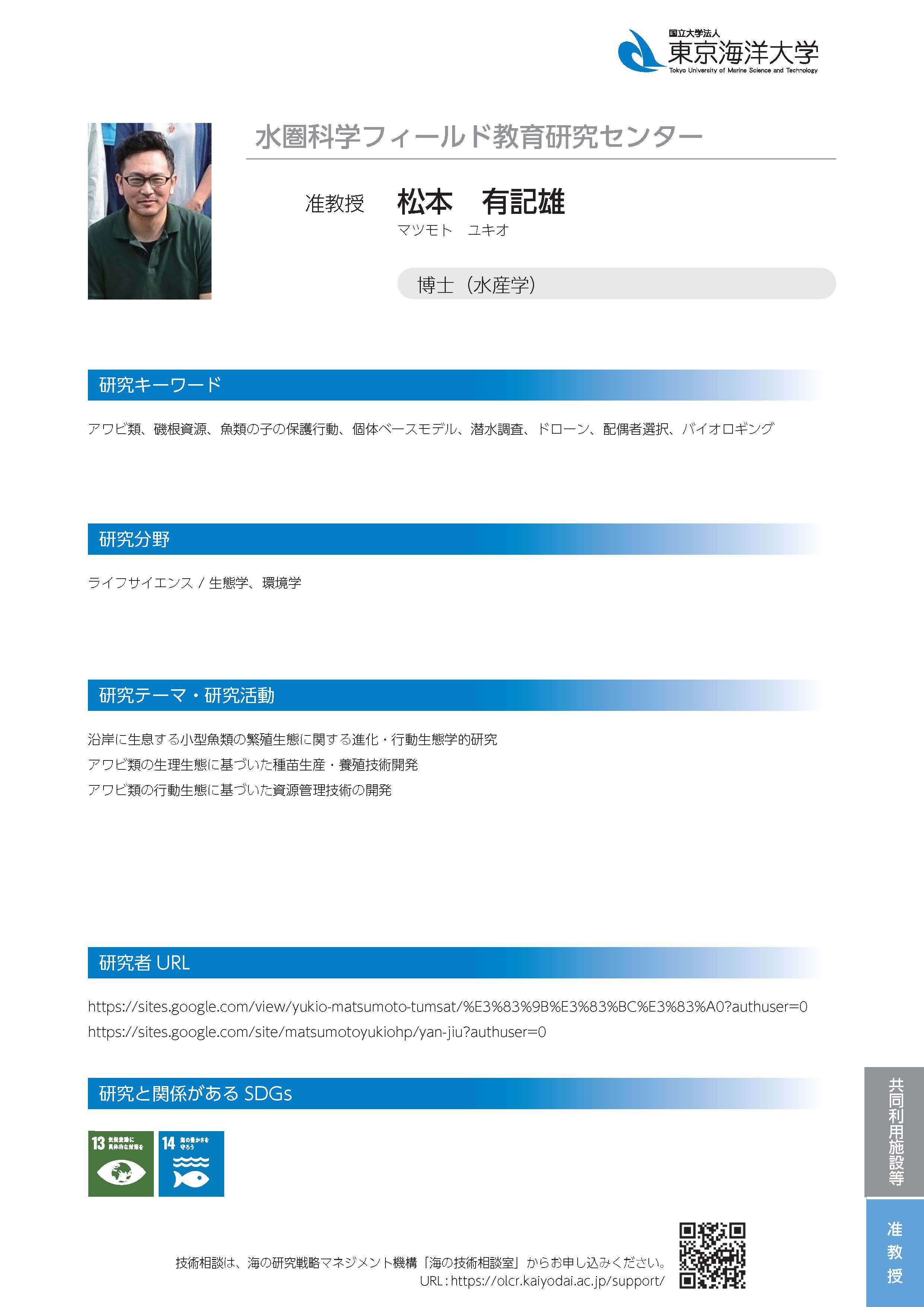 | 研究者総覧冊子版 | 水圏科学フィールド教育研究センター_准教授_松本有記雄.pdf |