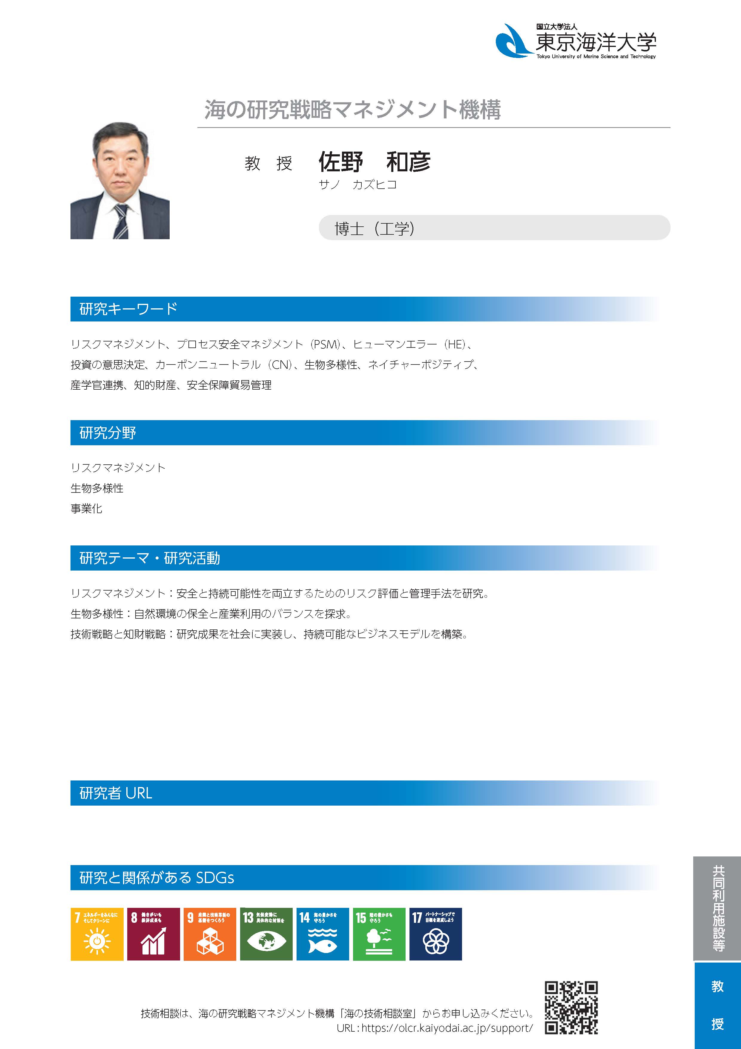 | 研究者総覧冊子版 | mss_教授_佐野和彦.pdf |